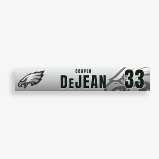 Cooper DeJean Game-Used Philadelphia Eagles Locker Name Plate (10/26/2025)
